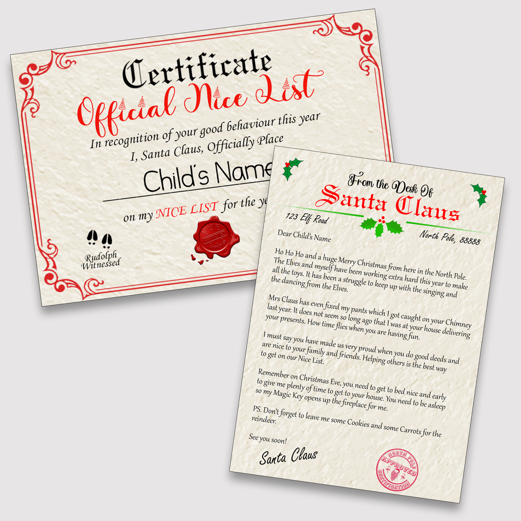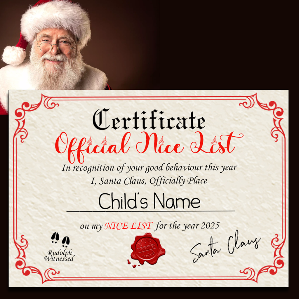 Personalised Christmas Nice List Certificate and Letters 2025